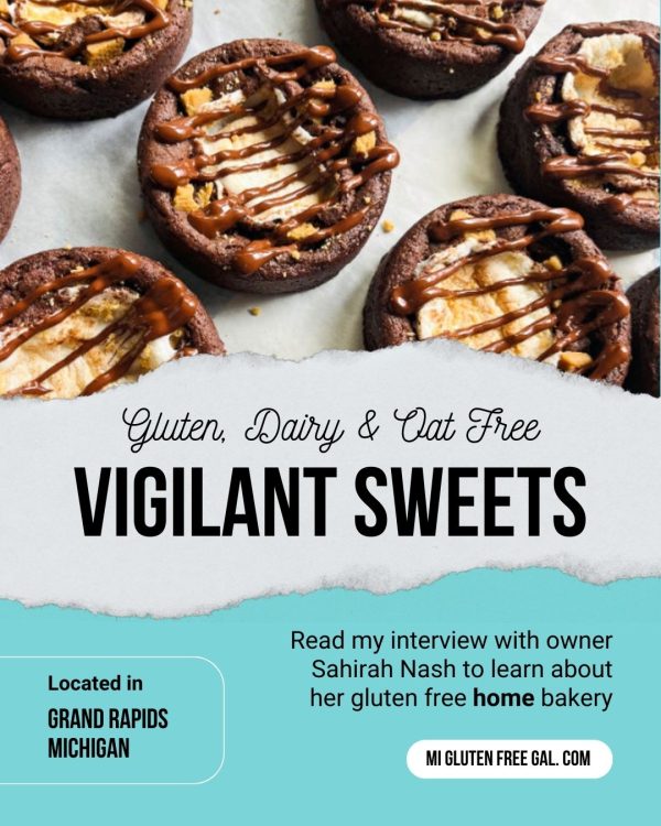 Vigilant Sweets is one of many gluten free bakers across the state of Michigan. Click this link to see a comprehensive list of all the gluten-free bakeries in Michigan, complete with interactive map! Looking for more local eats? Check out my list of gluten free baked good options at Michigan Farmers Markets.